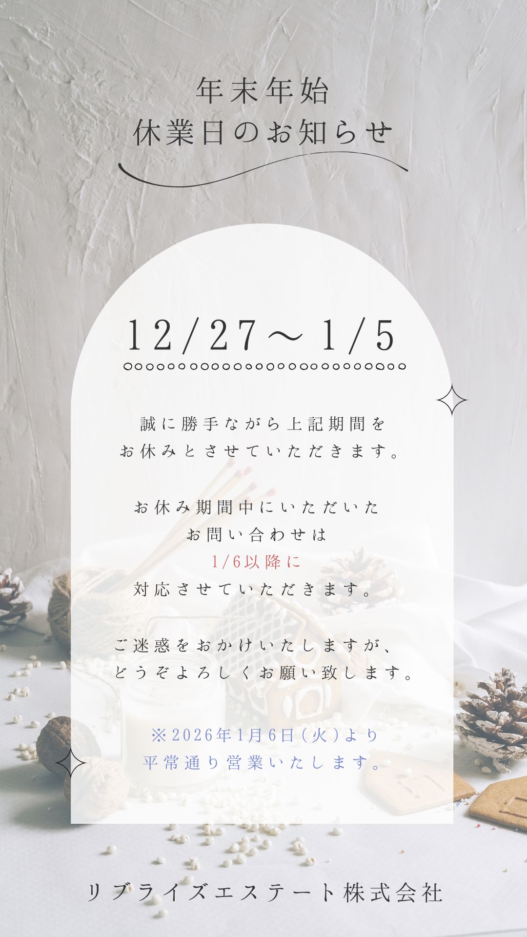 【 冬季休業のお知らせ 】